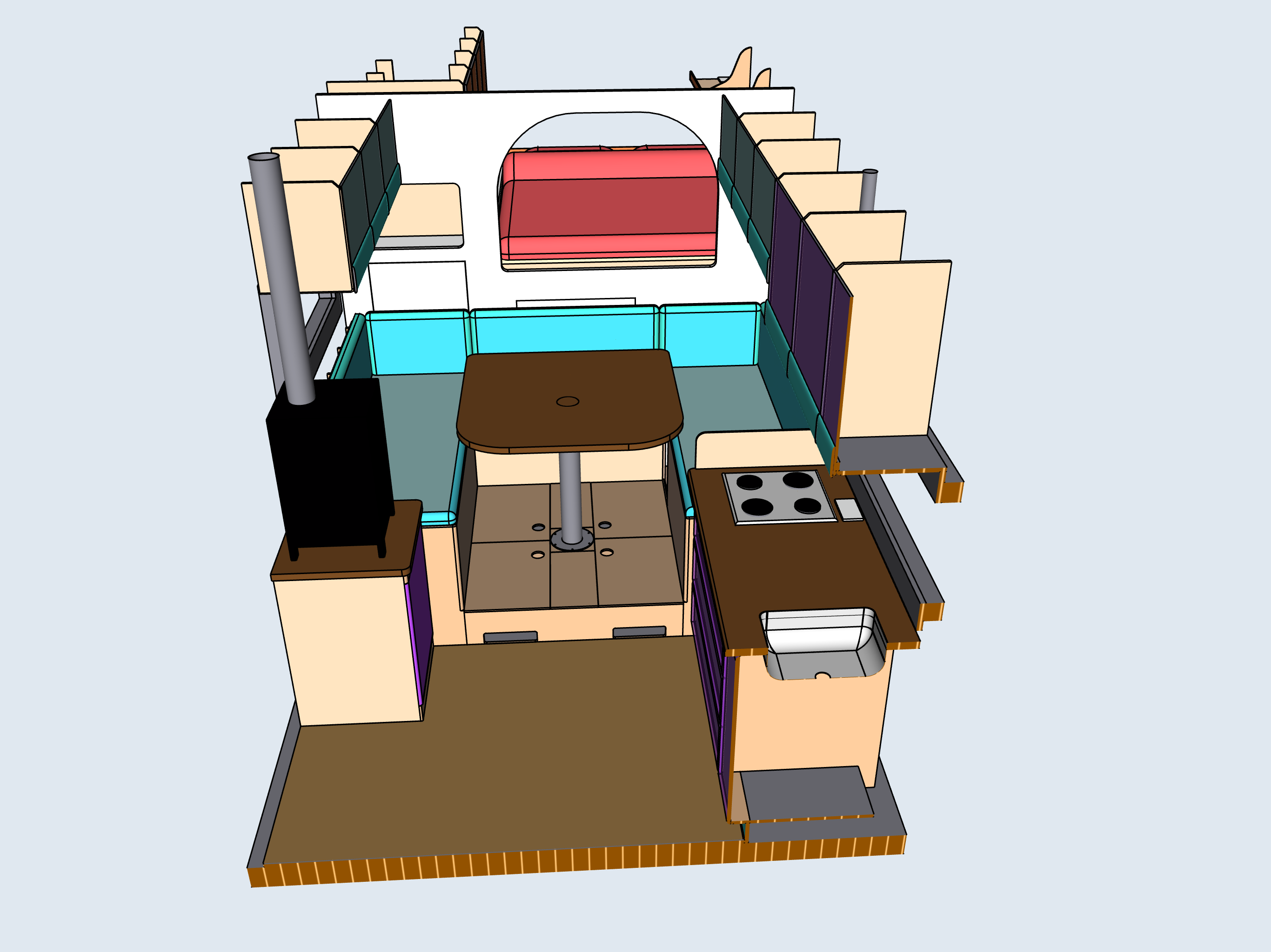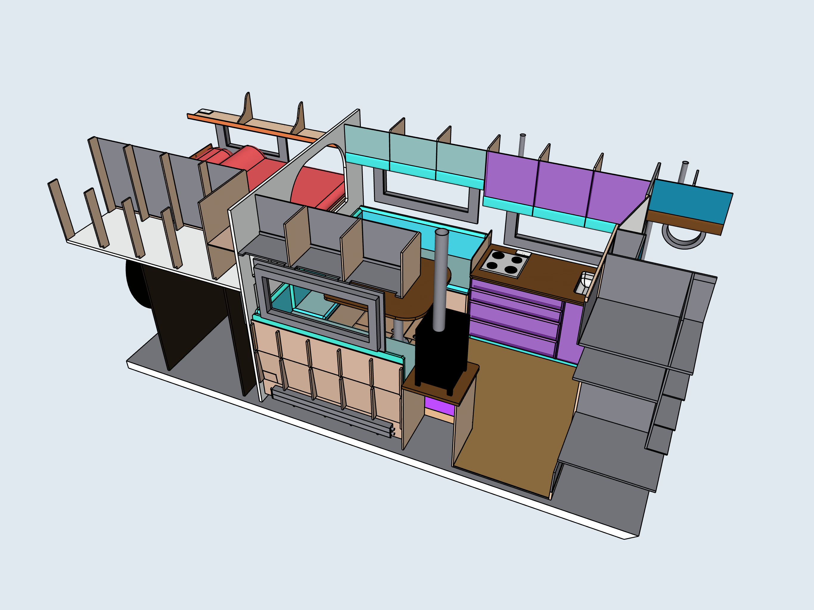 Lange bevor wir wussten, welches Fahrgestell es denn nun sein würde, ging natürlich die Planung los. Zunächst wurden unzählige Skizzen verschiedenster Grundrisse ganz herkömmlich mit Papier und Bleistift angefertigt.