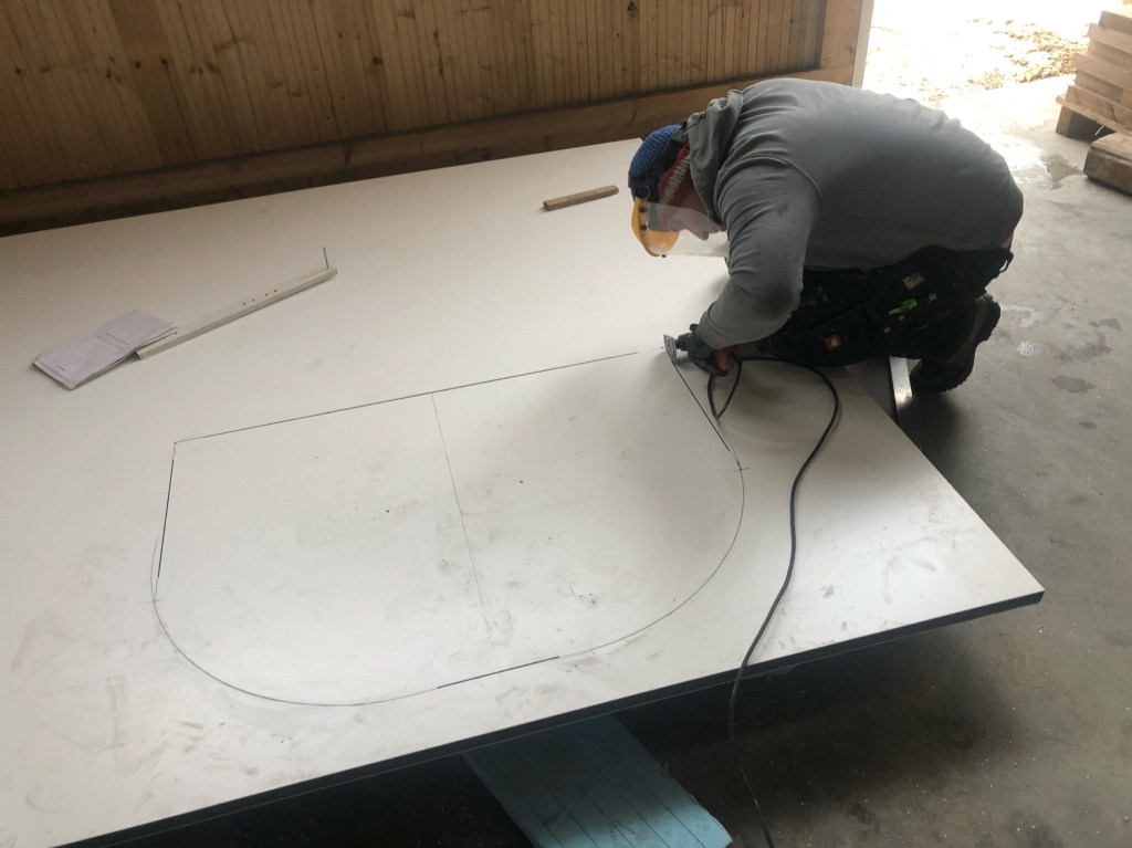 Der Einstieg zum Bett hat wegen der Rundung oben eine etwas schwierige Form. Das Schneiden ist weniger das Problem als viel mehr die Verkleidung des Schnitts.