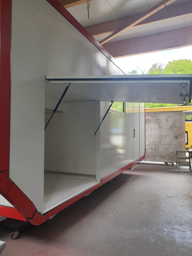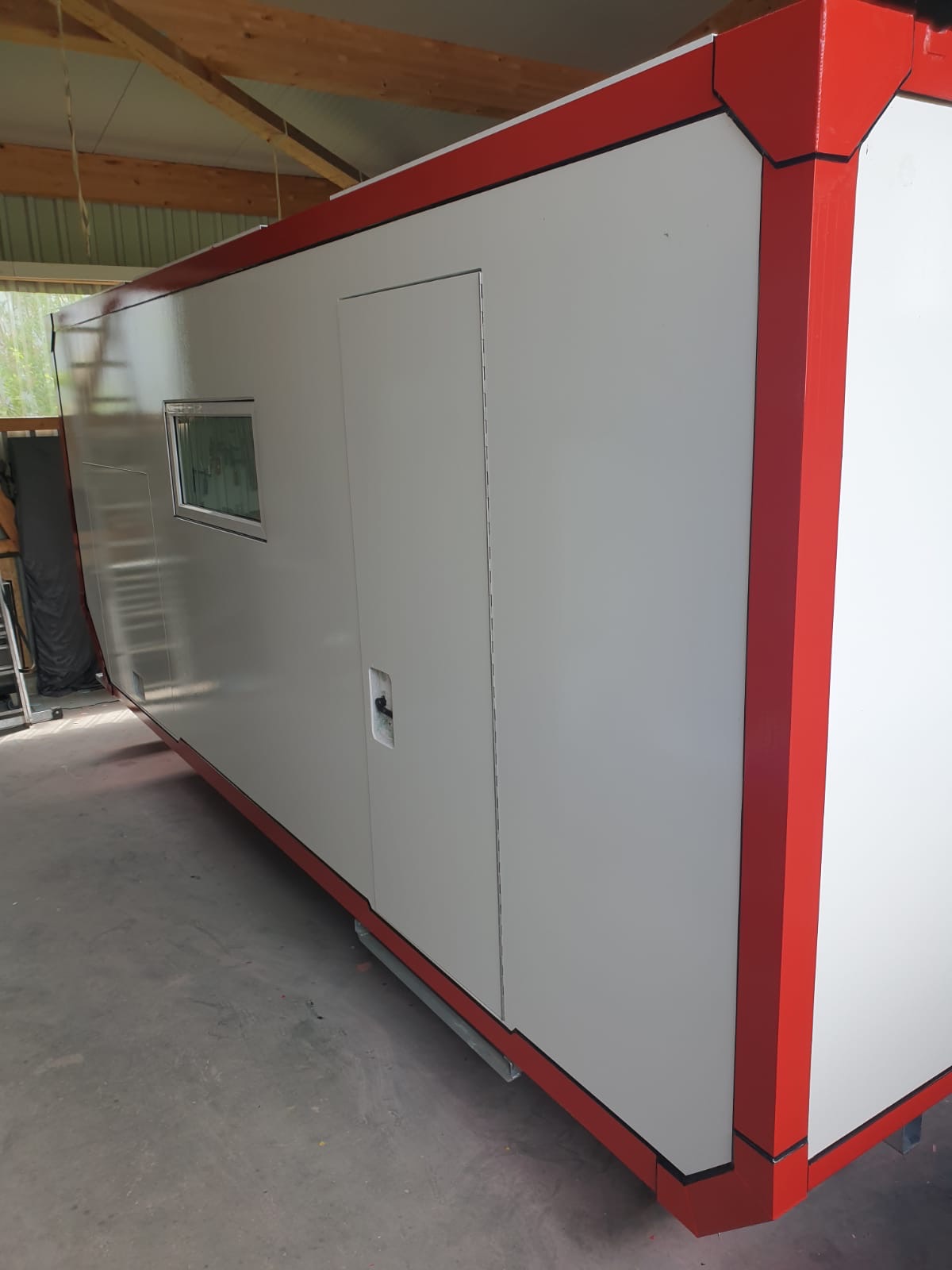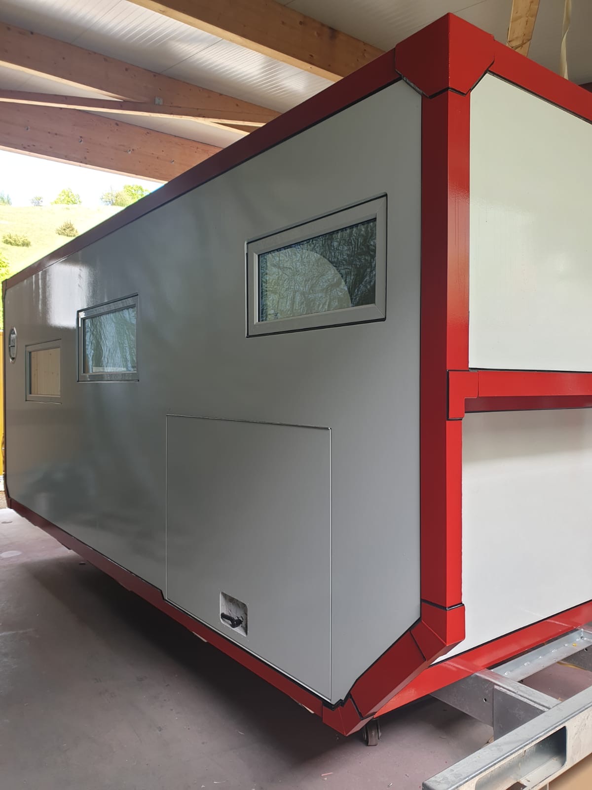 Gerade gestern erreichten uns neue Bilder. Die Kabine ist nun fertig lackiert und die Übergänge an den Fenstern und den großen Alu-Winkeln sind verfugt.