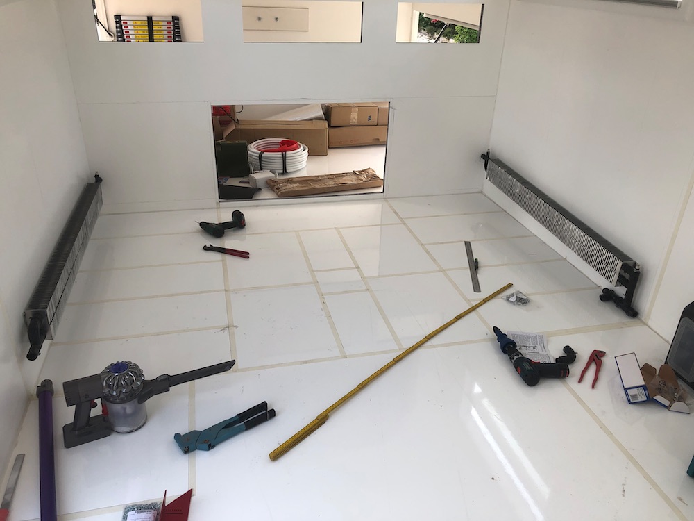 Im Wohnraum wurden die Konvektoren für die Sitzgruppe montiert.