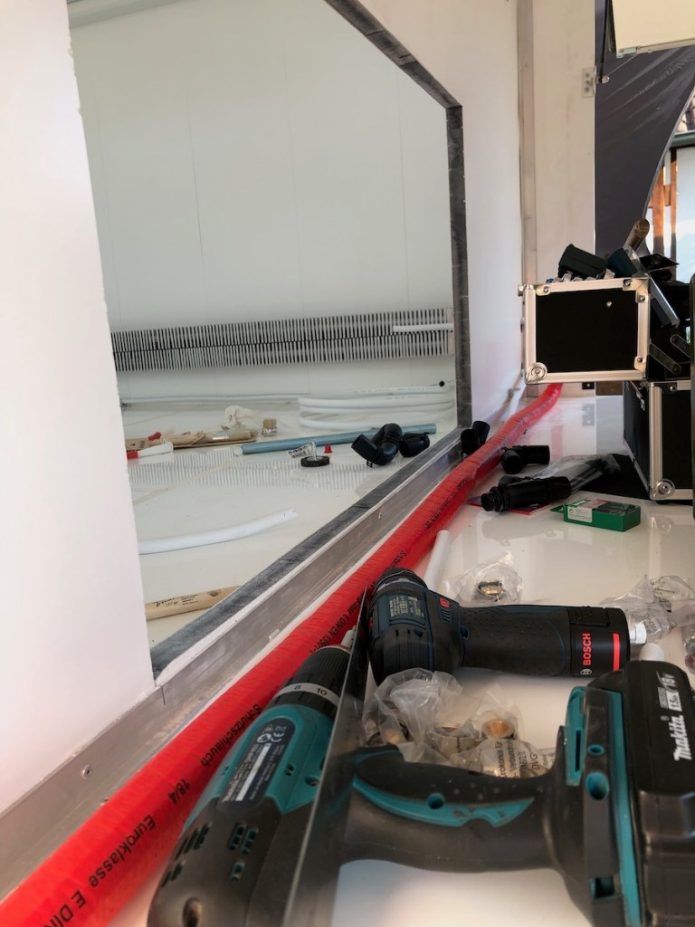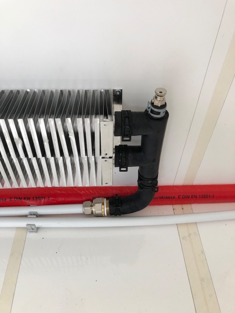 Es führen bekanntlich viele Wege nach Rom. Genauso gibt es viele Möglichkeiten, welche Heizungsleitungen man verwendet. Der Hersteller empfiehlt Aluminiumrohre. Das haben wir im Bettbereich benutzt. Viel einfacher in der Handhabung sind jedoch sog. 16mm Mehrschichtverbund Aluminiumrohre aus dem professionellen Heizungsbau. Sie sind stabil und lassen sich wunderbar mit Hilfe einfachster Werkzeuge biegen.