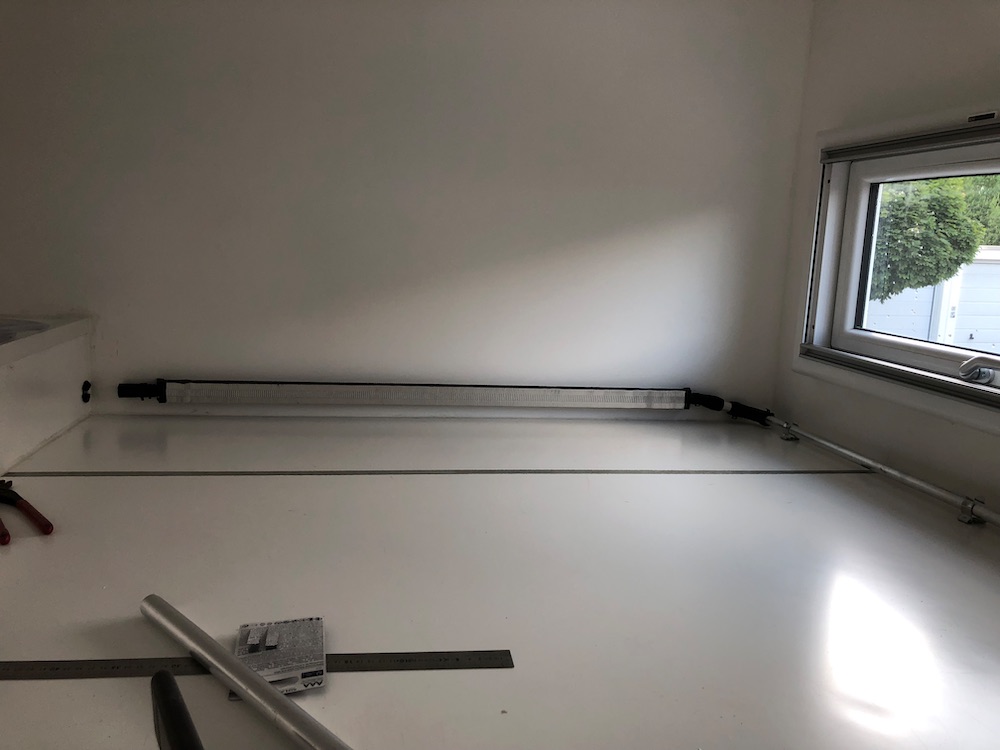 Die Heizungsleitungen haben wir erst einmal grob abgelängt und am Boden befestigt.