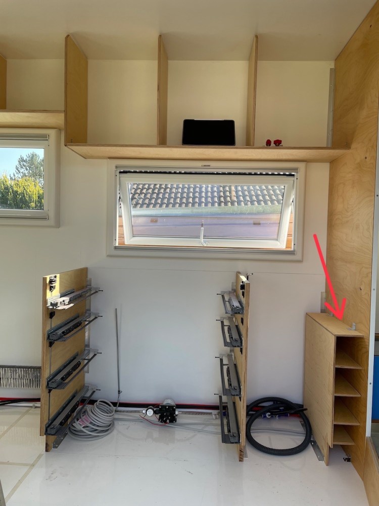 Akribisch und mit Schreinerwinkeln bewaffnet, geht Rico vor und befestigt die Korpuswände erst an den Boden und dann an die Seitenwand der Kabine. Was war das Kerlchen aufgeregt, ob die Schubladen auch wirklich reinpassen…. Aber wie es sich für unseren großen Denker und Planer gehört, flutschten diese wie geschmiert und nichts hakte und klemmte. Das Bild folgt, da der große Moment der Farben noch kommt.