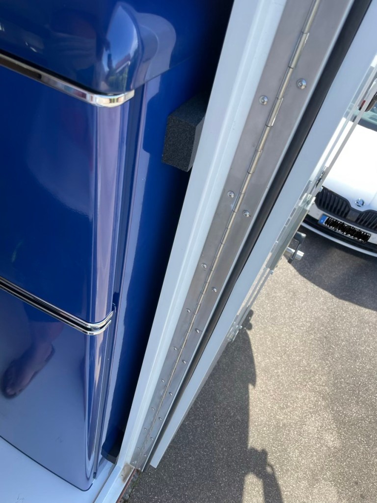 Im letzten Beitrag haben wir kurz den Kühlschrank erwähnt. Dieser ist inzwischen auch bei uns angekommen und will verbaut werden. Das Ding ist echt groß und steht in der Garage im Weg. Also, frisch ans Werk: