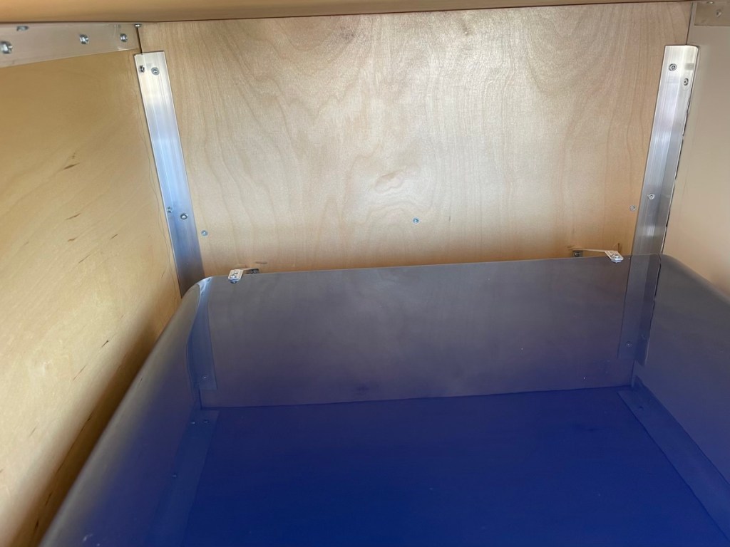 Am Boden haben wir hinten ein Alu L-Profil am Boden verschraubt.